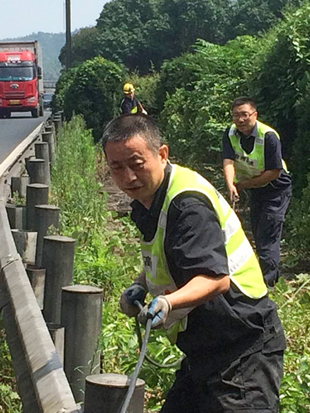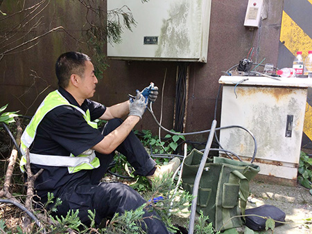 圖為修復(fù)后的隧道口路燈 對(duì)于修復(fù)被盜電纜,一般最直接的做法是重新再拉一根新電纜至配電箱,利用箱內(nèi)現(xiàn)成的控制開關(guān)和交流接觸器等元器件,完成整個(gè)電纜連接工作,但中心隊(duì)員考慮到此種方法不僅工作量大,修復(fù)成本高,而且存在再次被盜的可能性,如果用鋁線代替,電力傳輸又要大打折扣。于是,他們另辟蹊徑,計(jì)劃從剩余配電箱至路燈還有200余米未被盜取的電纜中截取一段,直接和洞口情報(bào)板電纜相接,這樣既能節(jié)省人力、物力,又能以最快速度恢復(fù)路燈正常工作。 當(dāng)天一早,中心隊(duì)員帶上相應(yīng)的工具和設(shè)備直奔現(xiàn)場(chǎng),在確認(rèn)電纜位置及走向后,便著手抽離洞內(nèi)電纜。考慮到洞口到配電箱電纜至少有100余米,電纜溝下面又鋪有其他眾多電纜以及之前掉落的垃圾,直接從洞口抽離根本無(wú)法動(dòng)彈。于是,中心4名隊(duì)員便每隔10米左右用撬棍撬開上面水泥蓋板,整個(gè)人跳進(jìn)電纜溝內(nèi),彎著腰一段一段抽離。抽到最后一個(gè)溝時(shí),4人頂著烈日,齊力把重達(dá)近百斤電纜抽離整個(gè)電纜溝并放置在護(hù)欄內(nèi)側(cè)草地上,隨后再?gòu)某槌龅倪@段電纜中剪取適當(dāng)長(zhǎng)度,重新鋪設(shè)后與寧向出洞口的情報(bào)板電纜相接。 臨近中午,戶外溫度不斷升高,中心隊(duì)員早已濕透衣背,為趕在一天中最熱的時(shí)間點(diǎn)前完成任務(wù),4名隊(duì)員臨近解決午餐又迅速奔赴現(xiàn)場(chǎng),拆除原配電箱內(nèi)的舊器件,將其用回到新的供電線路中,而多余的器件則捆綁打包帶回中心以留備用,節(jié)省公司后期維養(yǎng)成本。 下午1:40,經(jīng)過(guò)通電測(cè)試,9盞路燈全部恢復(fù)正常工作。集團(tuán)總工程師江輝在工程部微信群里肯定了中心工作,并提醒一線人員切記做好防暑降溫工作,注意自身身體狀況。