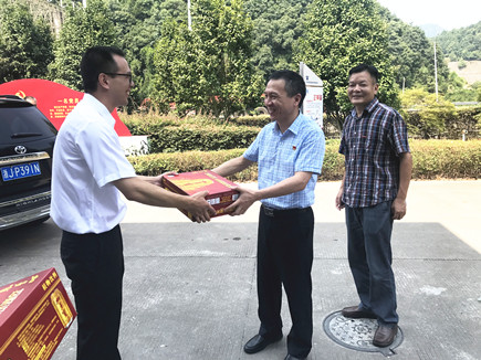 圖為集團(tuán)副董事長(zhǎng)、總經(jīng)理張建平給一線(xiàn)員工送上消暑品