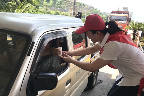 “大中午的,天氣熱,剛才還暈乎乎的想睡覺,現(xiàn)在喝了一杯冰冰涼的綠豆湯,整個(gè)人都舒暢了。”一位貨車師傅開心地說。 “沒想到,你們收費(fèi)站還有這個(gè)服務(wù),這次我要出趟遠(yuǎn)門,說不定路上還真能用的上,謝謝呀!”一位接過礦泉水和風(fēng)油精的老師傅連聲道謝。 天氣雖炎熱,服務(wù)不“打烊”。 在活動中,志愿者們不顧自身大汗淋漓,仍身披橫幅,頭戴小紅帽,面帶微笑向途經(jīng)收費(fèi)所的司機(jī)們遞上一杯杯綠豆湯、一瓶瓶礦泉水。同時(shí),大家還不忘宣傳行車安全注意事項(xiàng),提醒司機(jī)朋友在高溫酷暑時(shí)節(jié)多注意行車安全。