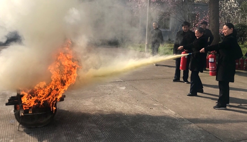 圖為滅火器使用模擬演練現場 “保險栓要先打開?!?/span> “用前記得搖一搖?!?/span> “不要怕,對準火源再噴,別急。” 隨后,該所開展滅火器使用模擬演練。在演練中,大家利用平時更換下來的舊滅火器,依次輪流進行操作,更有一些老員工主動熱心幫助新員工講解如何正確使用滅火器,以身示范正確操作方式及每一個分解動作要領。