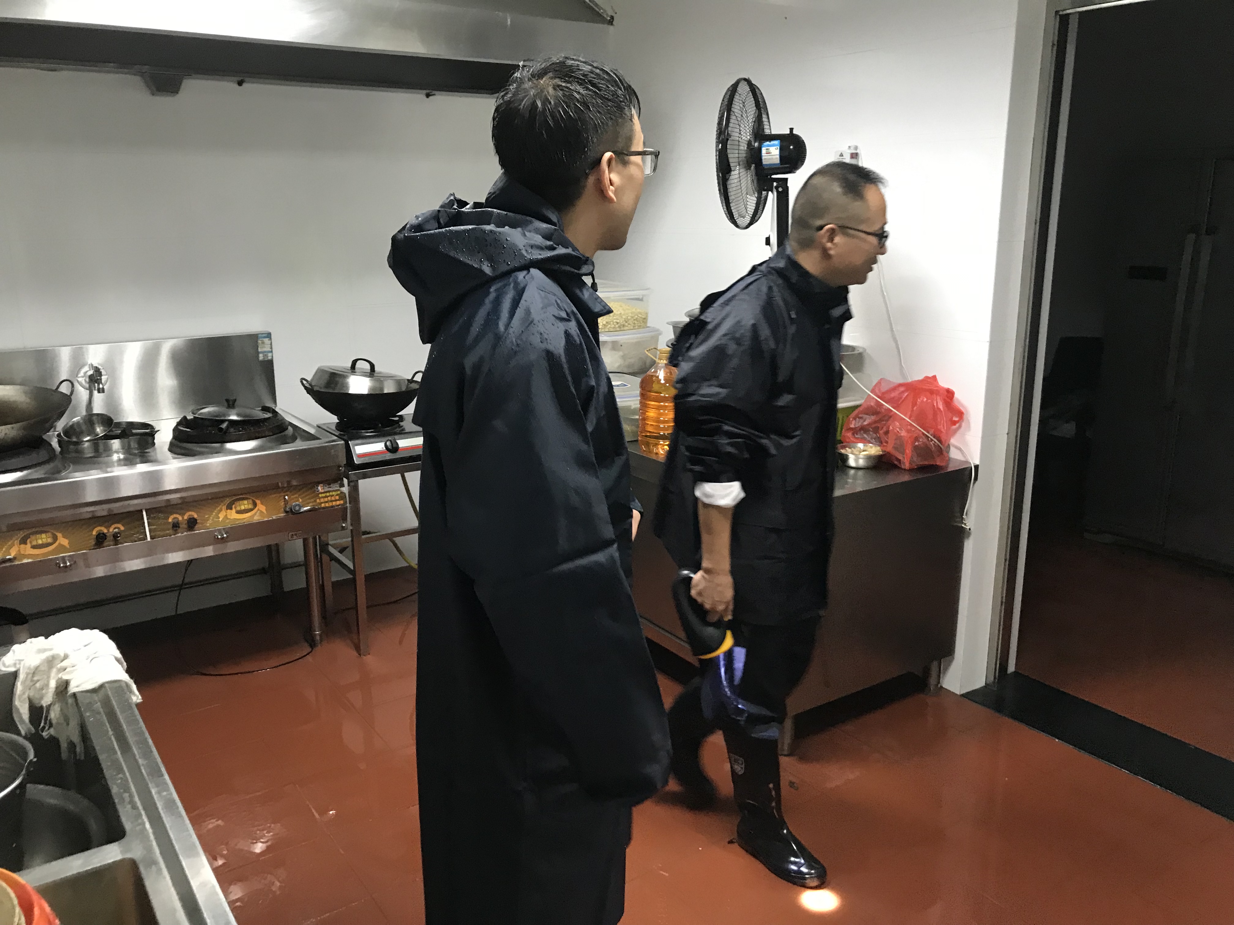凌晨2點10分,水位猛漲至70厘米,考慮到人員安全,孫明偉立即組織人員叫醒在寢室休息的員工,短短5分鐘內(nèi),將大家全部安全撤離到辦公樓。行政人員紛紛將寢室讓給第二天早上上崗的同事,自己卻整宿未睡,時刻關注水位上漲情況,直到天亮潮水退下,大家才在自己辦公室凳子上、會議室椅子上稍作休息。