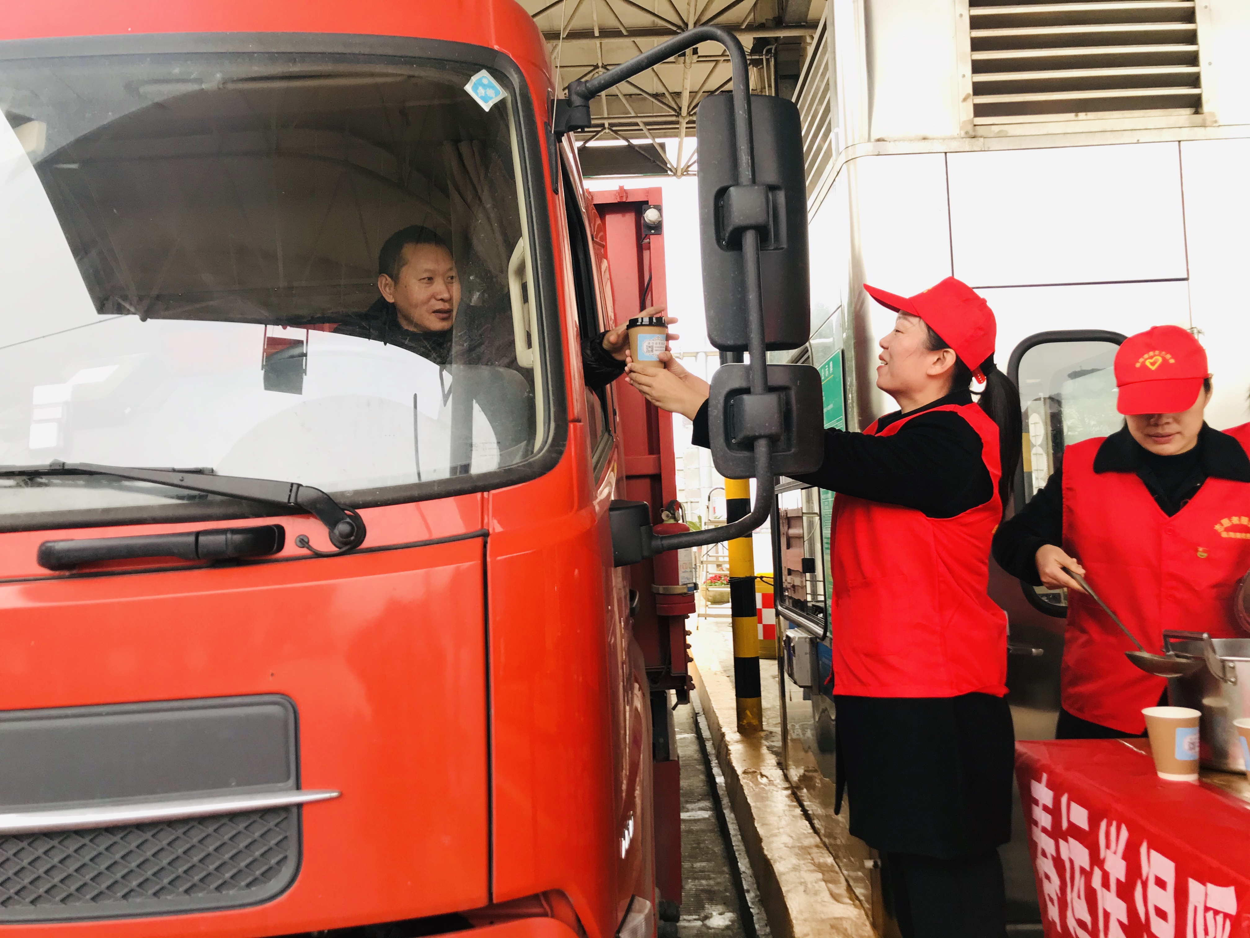 圖為送溫暖活動現(xiàn)場 活動當天,雖然氣溫較低,但在臨海南收費所出口處,身著紅色馬甲的志愿者們頂著嚴寒,依然熱情地為過往司乘人員遞上一杯杯滾燙的姜茶、紅棗茶,并向他們提供問詢、指路、飲水和提示路況信息等便捷服務(wù)。除了設(shè)置志愿者便民服務(wù)臺,臨海南收費所還為過往駕駛員和出行旅客臨時增設(shè)休息室,提供道路溫馨提示服務(wù),同時還在車道配備了飲水機、藥品、修車工具等免費便民物品。