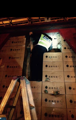 一張照片牽出一輛假冒“綠農車” 3月1日凌晨,車號為滬DL1247的廂式大貨車因假冒綠農車在臺州收費所被設卡攔截,司機因涉嫌詐騙被公安機關帶走調查。 這輛從溫州南入口、車門上印著“蔬果特快”軸限40噸的115型大貨車,在凌晨2:25分駛入臺州收費所,司機自稱運送蘋果。當檢查人員打開車廂后門,搬開疊放著兩層的蘋果箱后,發現廂體另有天地,一個用鐵條焊成的架子沿著廂壁固定在廂體內部,架子上豎著兩大片木板,木板遮擋了廂體六分之五的面積,透過木板縫隙能看到里面一箱箱的貨物。檢查人員把手伸進包裝箱里,拆開一看,里面全是電動車的配件。