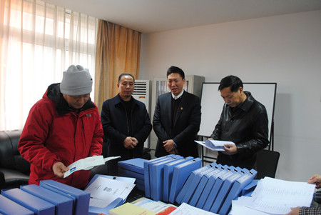 圖為評審專家正在查看相關(guān)臺帳