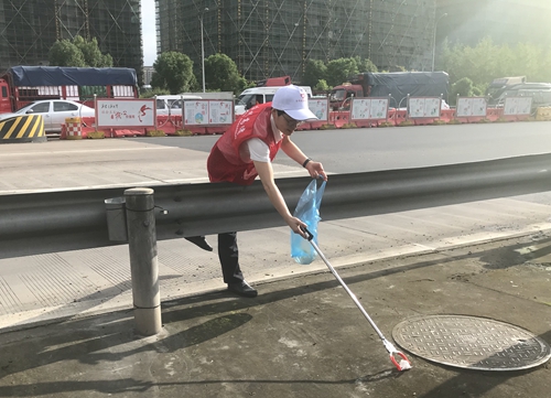 圖為志愿者開展“垃圾不落地”活動