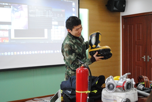 圖為消防員裝備介紹 此次專題講座進一步提高了大家對消防安全的重視,加強了防范意識,注意用火、用電安全,防止事故的發(fā)生,也深刻認識到了“生命至上,安全第一”的重要性,真正做到“防患于未然”。 楊雅芬
