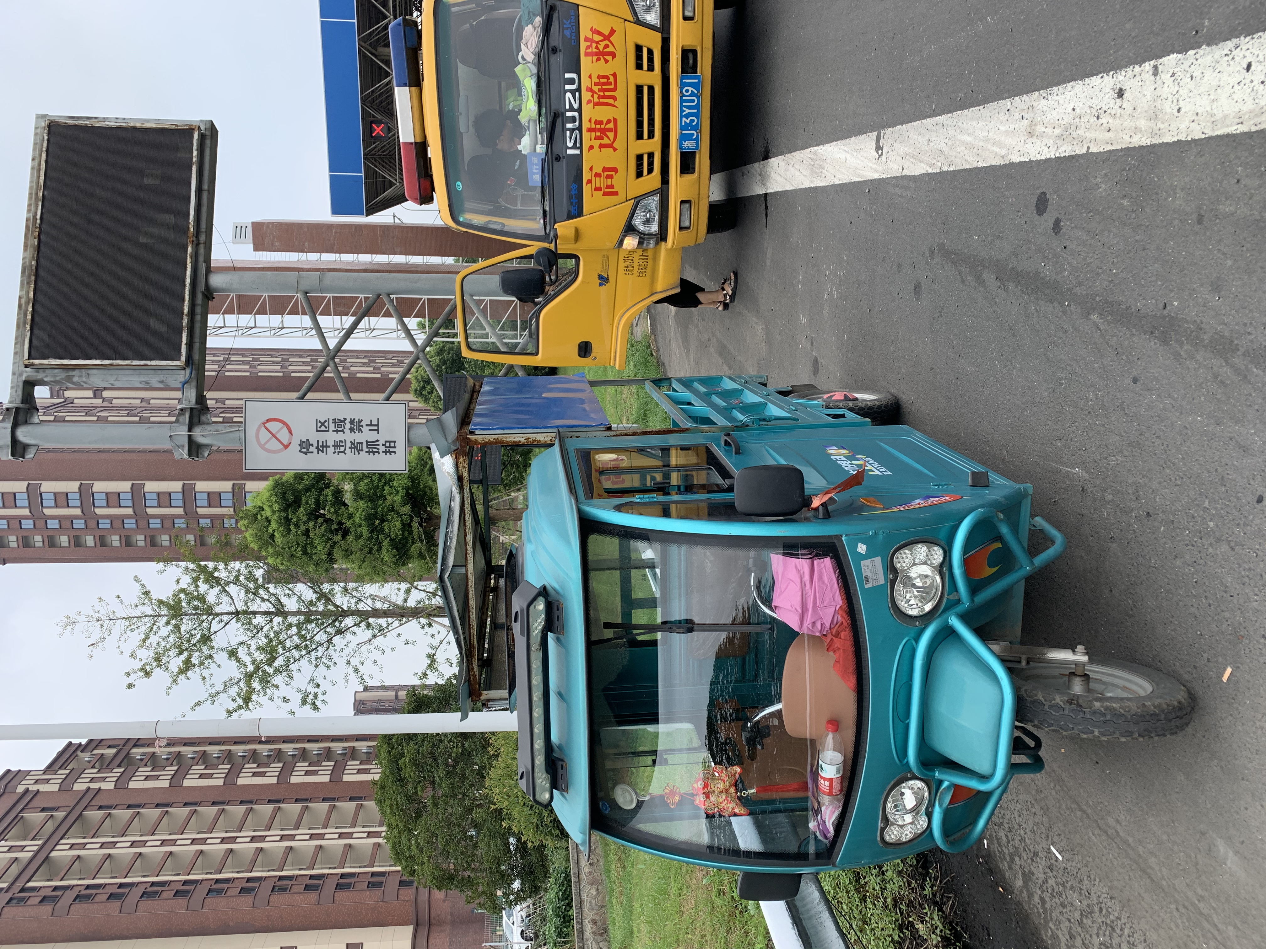 三輪車誤入高速 危險!!! 7月26日上午,一輛電動三輪車緊跟在大貨車后面開進臺州收費所入口車道,被發現后不顧收費員勸阻,撞開欄桿,直奔寧向入口匝道。 10點18分,收費員發現此電動三輪車緊隨大貨車試圖進入高速,立即勸阻,但三輪車主不聽勸,收費員準備出崗亭勸返時,她直接撞開欄桿向前行駛,收費員立即用對講機匯報了情況。此時正在出口處理特情的班長聽到后,快速往匝道口追去,邊追邊喊,并通知監控中心,然而三輪車加速前行。10點30分左右,交警在主線找到這輛三輪車并攔截住,10點50左右在高速救援車(輪胎車)的護送下,安全出高速。