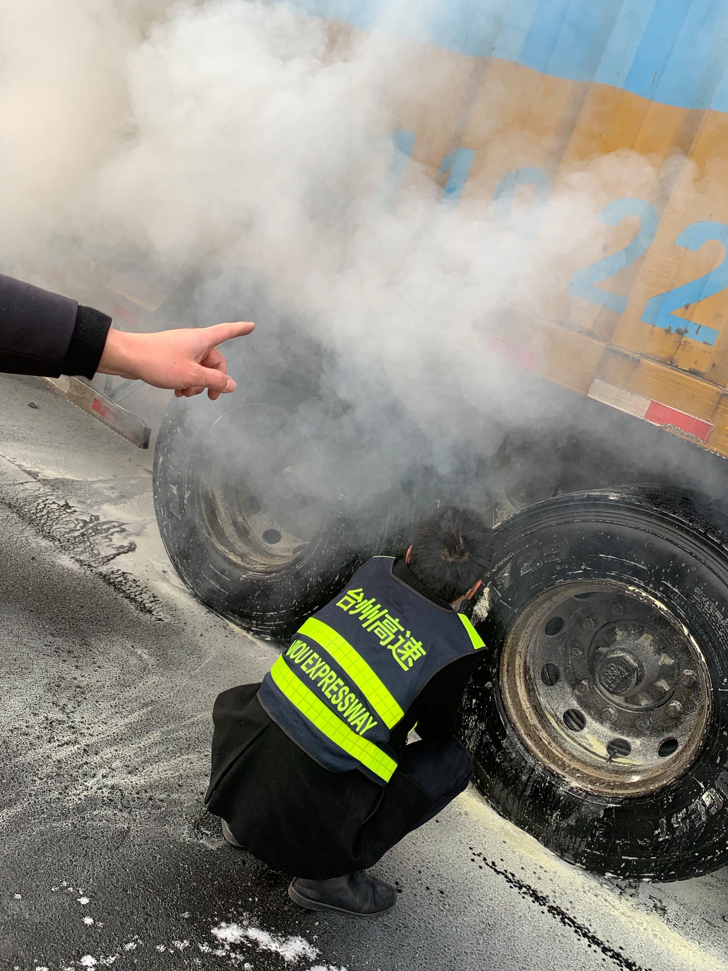 “嘭……”3月5日早上7:35分左右,臺(tái)州收費(fèi)所傳來(lái)一聲巨響,一輛車牌“閩”字開頭的大貨車緩緩駛來(lái),其車廂后輪胎正冒火光,隨之白煙滾滾升起,駕駛員卻渾然不知,一路行駛。