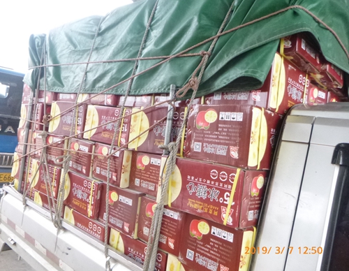 圖為綠農車運輸的貨物 按照流程,正常刷卡和收費后,車子就可以放行了。但作為老收費員,老周還是下意識地瞟了一眼車上的貨物,像是一箱箱蘋果,于是便詢問了司機。在得到司機的肯定回答后,老周告知他的貨車如果運的是符合文件規定的“鮮活農產品”,是可以免交通行費的。于是老周叫上其他工作人員一同出去拍照檢查。在檢查過程中,得知司機是第一次運蘋果上高速,不了解鮮活農產品運輸綠色通道相關政策,老周向他簡要介紹了有關綠農車免費通行政策。檢查后,該車是符合綠色通道減免政策的,老周作了登記后對該車免費放行。 在此提醒廣大司機,開車上路前可以多多了解高速公路相關的優惠政策,如“重大節假日免收小型客車通行費”和“鮮活農產品運輸綠色通道”等之類的相關政策法規。同時,各收費站將堅決打擊假冒違法綠農車,嚴格執行相關政策規定,做到應免不征,應征不漏。 蔡建星