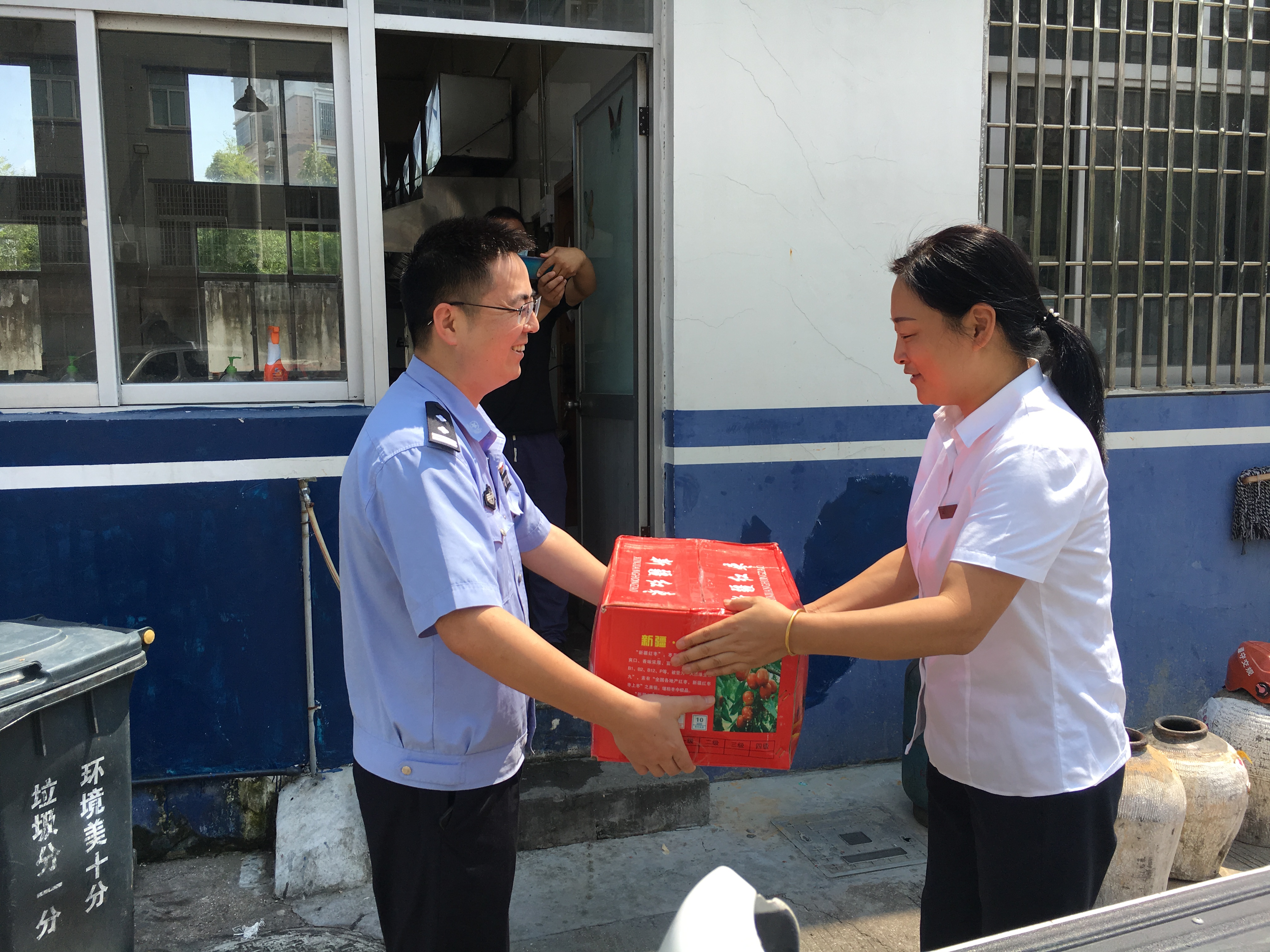 炎炎夏日送清涼 滴滴關懷沁警心 7月15日上午,溫嶺西收費所所長楊瑩瑩等一行人頂著烈日,冒著酷暑來到大溪派出所,親切慰問派出所的民警們,并給他們帶去了紅棗、綠豆、蓮子等慰問品,表達了對民警們的關懷,對派出所長期以來為維護收費站周邊環境穩定所付出的辛勞表示感謝。