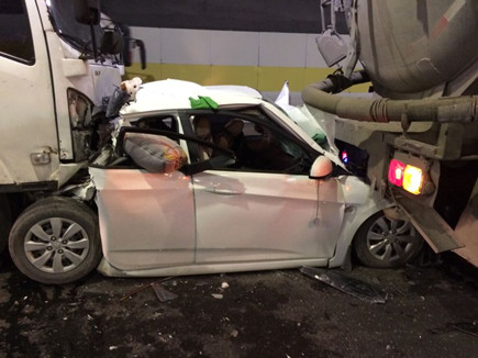 1月15日上午10時59分,黃土嶺執(zhí)勤隊剛處理完一起寧向兩車追尾事故,在返回的途中,急促的電話鈴聲再次響起,寧向隧道1200米主車道上又發(fā)生一起油罐車、轎車、集裝箱三車追尾,轎車夾在兩車之間,被撞得“面目全非”,現(xiàn)場隨處散落著汽車零件,可能有人員受傷。