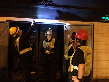 圖為工作人員檢修照明系統線路