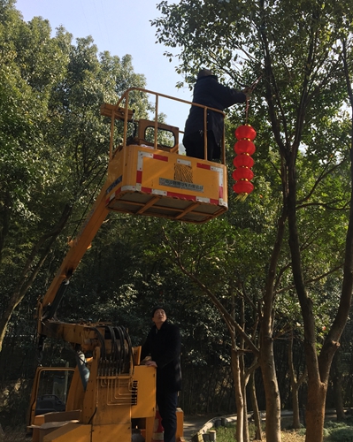 圖為黃土嶺隧道所員工合影 “往左往左,站臺(tái)再下降一點(diǎn)。”金先華麻利地操作著登高車,“爬樹高手”金美忠自然地肩負(fù)起了懸掛燈籠的任務(wù),而個(gè)子高高的廖科則負(fù)責(zé)遞燈籠,其它人員有的負(fù)責(zé)將燈籠系好鐵絲,有的負(fù)責(zé)扛梯子,有的則不時(shí)地在遠(yuǎn)點(diǎn)兒的位置仔細(xì)看燈籠掛得正不正, 兩個(gè)燈籠高度是否一致,對(duì)聯(lián)是否對(duì)齊等等。大家有說(shuō)有笑,忙得不亦樂(lè)乎! 不一會(huì)兒工夫,喜慶的春聯(lián)貼起來(lái),紅紅的燈籠串掛起,管理所員工在一片喜氣的歡樂(lè)氛圍中共同期待著的新年的到來(lái)! 林 玲
