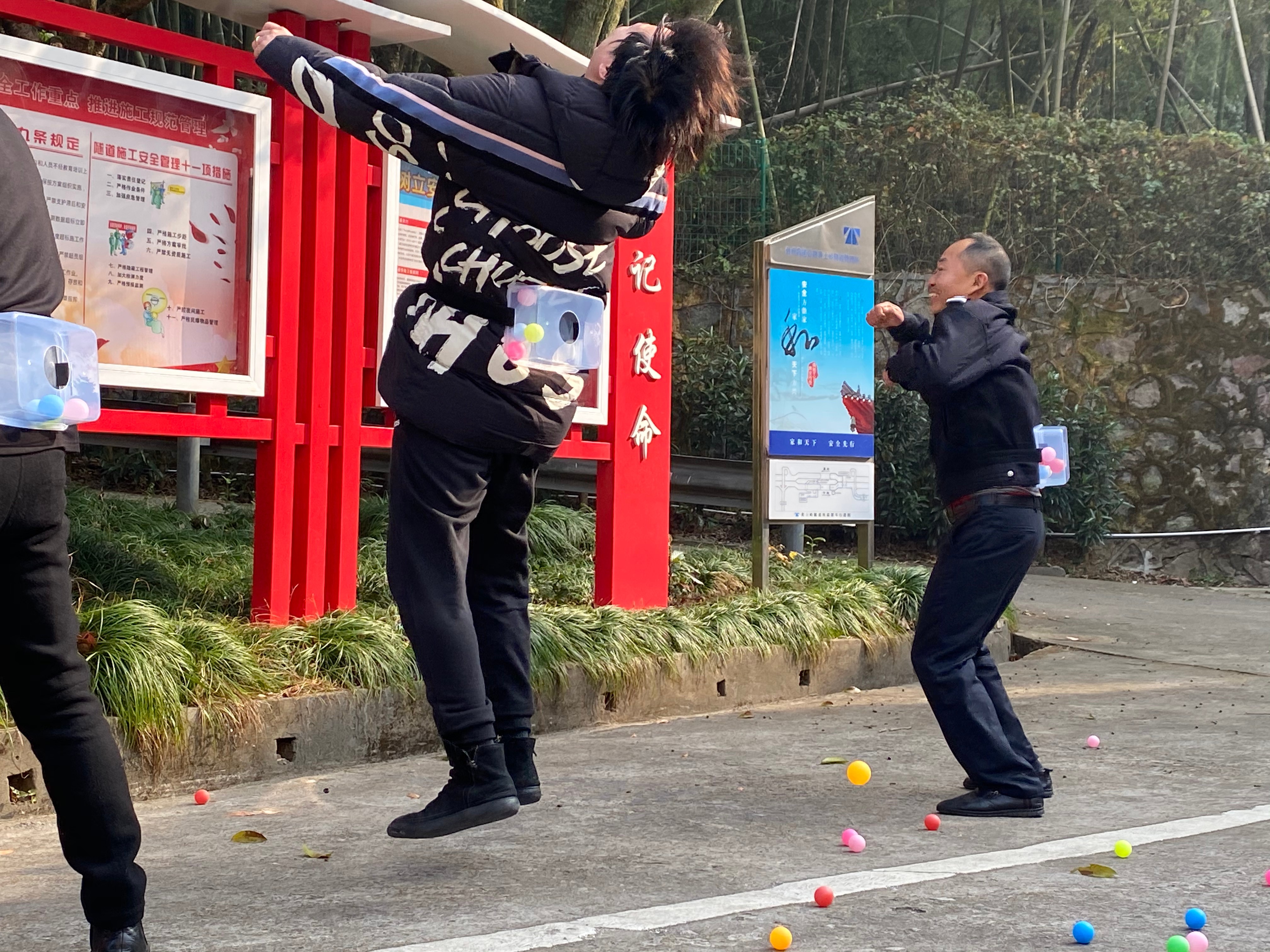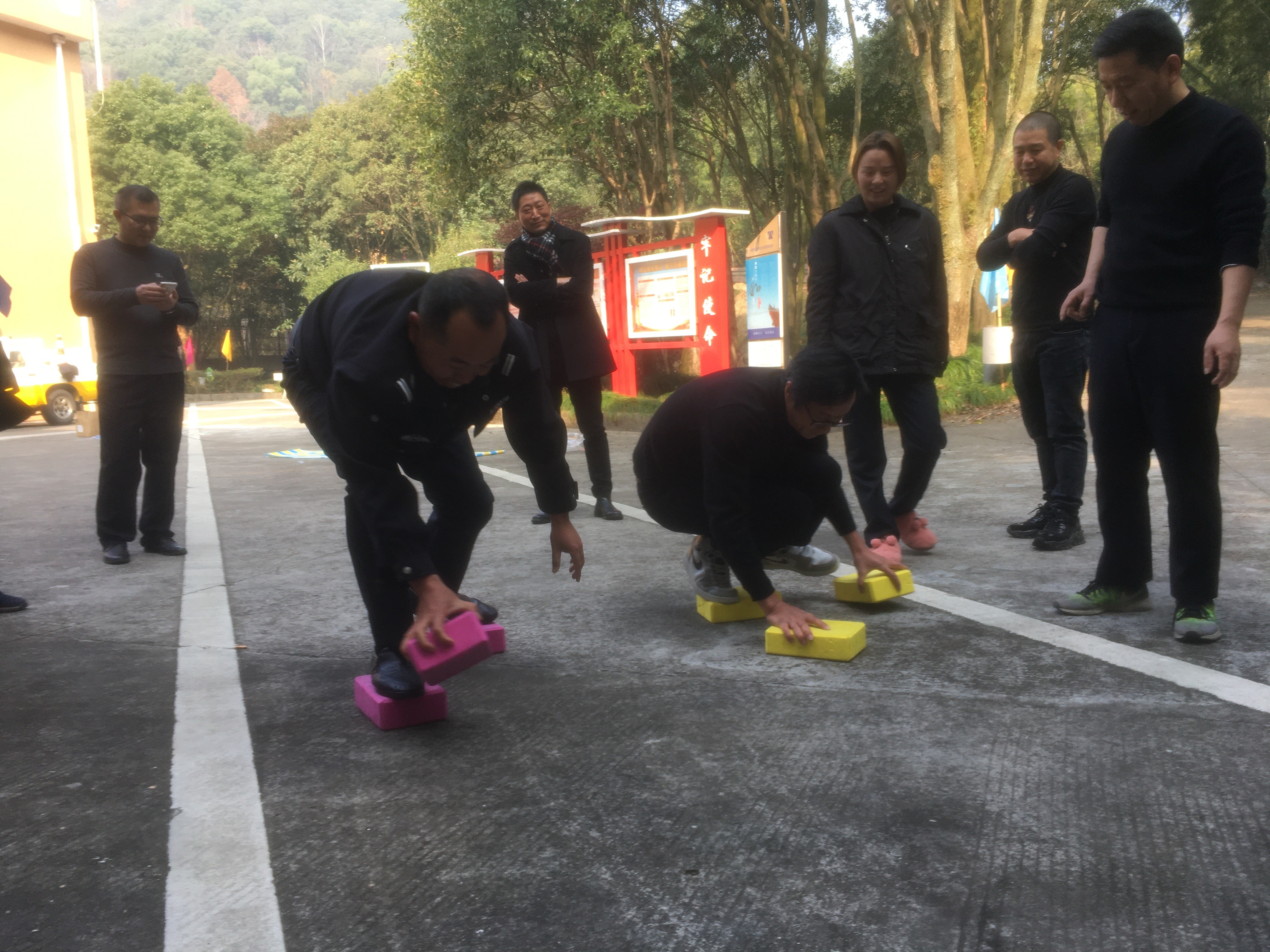 12月29日上午,臺州高速黃土嶺隧道所舉辦了一場別開生面的趣味運動會,寬闊的廣場上充滿了歡聲笑語,吶喊聲、加油聲此起彼伏,隧道所領(lǐng)導(dǎo)與全體員工積極參與、共同合作。 本次“運動會”分個人與團體兩種形式,個體項目有投籃、飛鏢、電臂達人等,團體賽項目分別是無敵風火輪和摸石過河。 “預(yù)備,開始!”隨著裁判員一聲令下,摸石過河比賽開始了,選手們迅速進入狀態(tài),彎腰、拿磚、邁腳,隊員竭盡全力地將腳下的磚塊不停地移動。兩只腳踩在一塊磚上,兩只手把另外兩塊磚不斷地向前移動。“還有5米、2米,堅持??!”隊員們個個腳疼腿軟,但毫不松懈,勇爭第一,最后執(zhí)勤二隊一舉勝出。