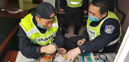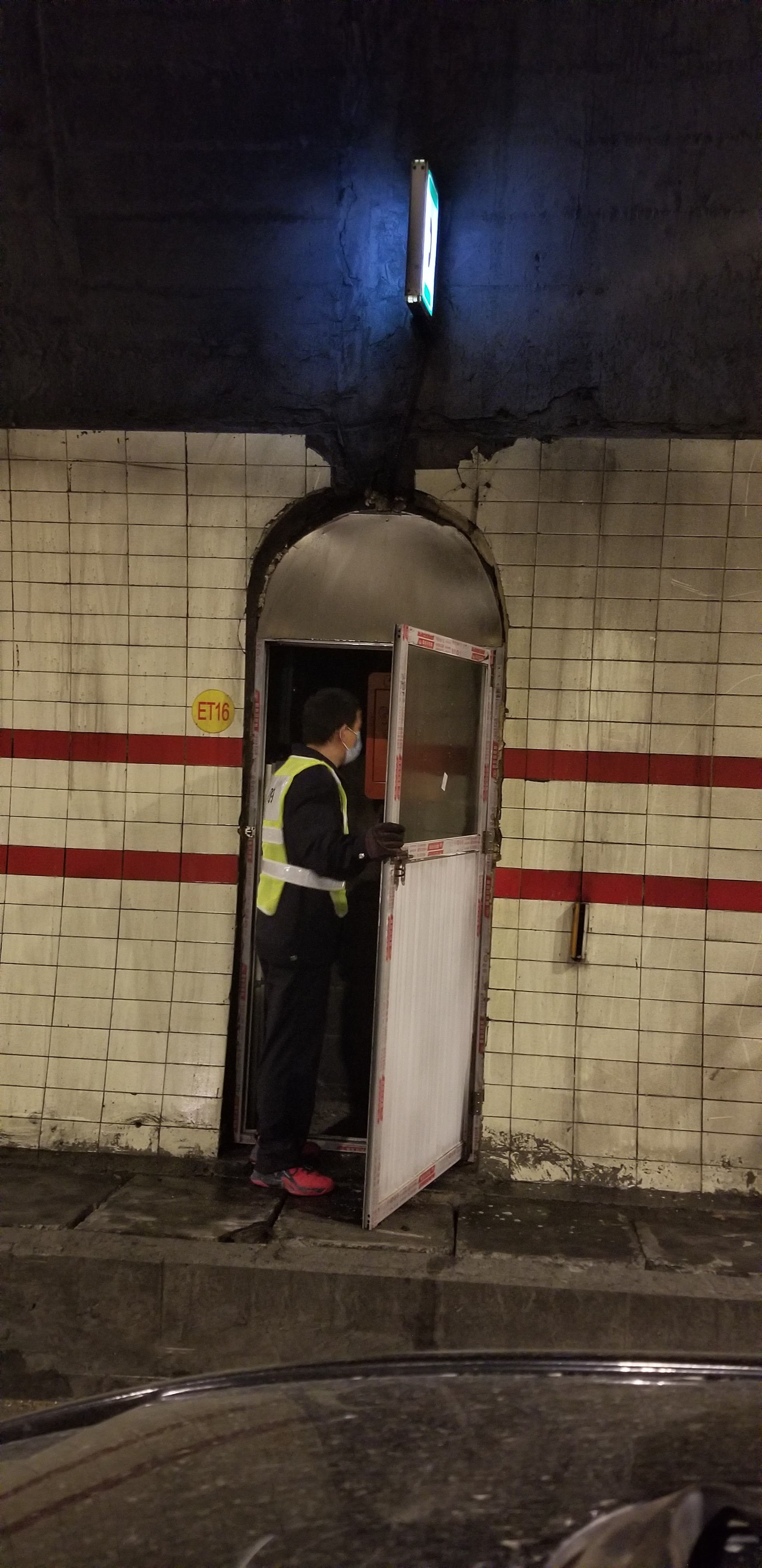 圖為工作人員在檢修緊急電話 此次隧道清洗,隧道所員工加班加點,檢查隧道內(nèi)消防箱、檢修隧道風(fēng)機和加強燈回路、修理故障的語音提示,對配電房機電設(shè)備進行除塵保養(yǎng),還檢測了火災(zāi)報警、緊急廣播、緊急電話等系統(tǒng)。