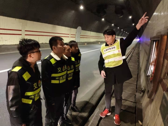 圖為羅鳴春對樂清市高速公路湖霧嶺隧道開發(fā)有限公司駐隧道南邊執(zhí)勤點的幾位新員工進行培訓(xùn) 借此次隧道清洗良機,所長助理羅鳴春對樂清市高速公路湖霧嶺隧道開發(fā)有限公司駐隧道南邊執(zhí)勤點的幾位新員工進行業(yè)務(wù)培訓(xùn),帶他們進入隧道熟悉隧道內(nèi)消防箱、人通、汽通的位置,并告知平時執(zhí)勤時的工作任務(wù),詳細(xì)解說了隧道封道、卡口、路面執(zhí)勤、施救的操作流程,希望他們能盡快融入工作,為大溪嶺-湖霧嶺隧道平安暢通貢獻力量。臺溫雙方將持續(xù)合作,共同管理,共同維護好這條隧道。 陳智慧