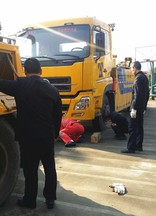 圖為演練現(xiàn)場 廣場上,當指揮員下達“拖車兩次增高作業(yè)演練開始”口令后,拖車在輔助工的引導(dǎo)下,駕駛員將拖車緩緩地倒到故障車的前面,停穩(wěn)后,輔助工立馬從工具箱里拿出托叉、方木等附件,將托叉插入托叉座,調(diào)整好位置,駕駛員操縱操作手柄進行第一次托舉鋼板作業(yè)。當抬高一定高度后,輔助工將方木填在前輪胎下面,然后放下托臂,重新調(diào)整好位置,進行第二次托舉工字梁作業(yè),直到達到安全高度,輔助工才抽出方木,駕駛員迅速將故障車拖離現(xiàn)場。兩次增高作業(yè)順利完成,演練達到了預(yù)期效果。 演練現(xiàn)場,氣氛熱烈,員工們針對復(fù)雜車型和去年拖車過程中發(fā)生的事故案例,相互探討,并紛紛表示在今后的工作過程中,要根據(jù)車型的實際情況,掌握各種作業(yè)技巧,同時要吸取事故教訓(xùn),增強安全意識,確保作業(yè)安全。 何先林