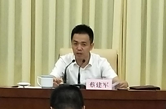 圖為臨海市委常委、常務(wù)副市長蔡建軍作動員講話