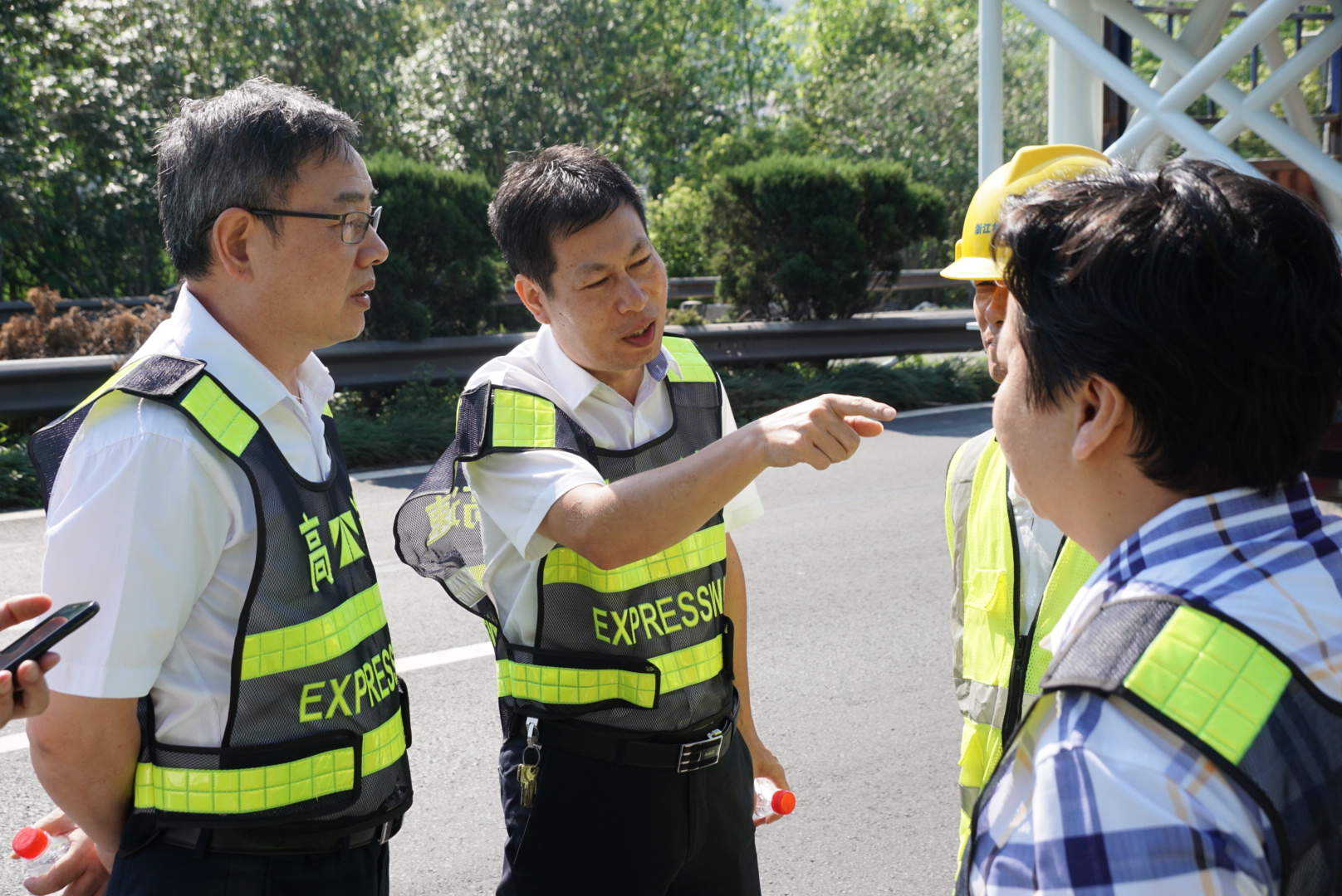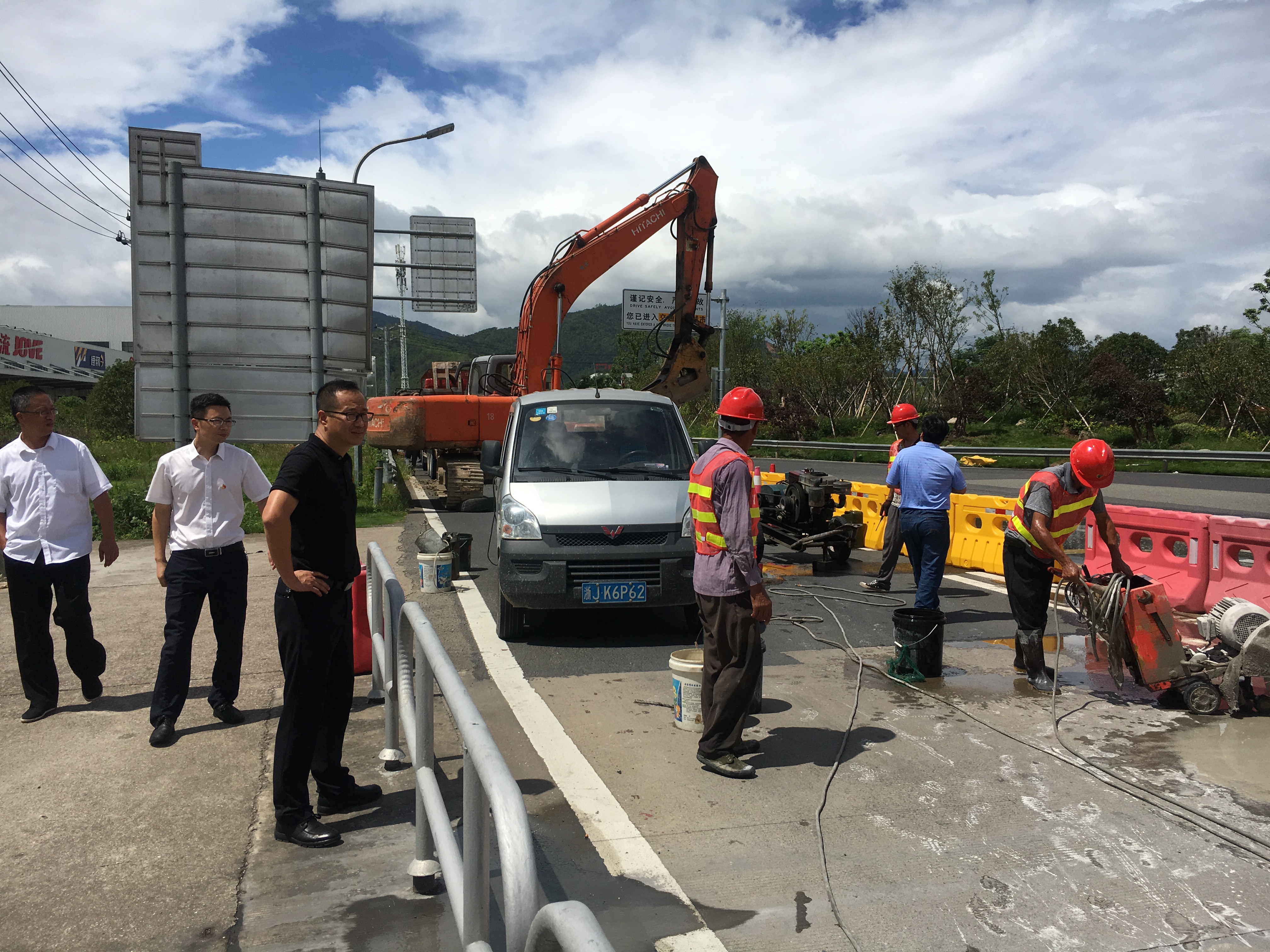 在甬臺溫高速公路臺州段溫州方向主線K1668+200M處現(xiàn)場,陳文波詳細(xì)了解龍門架吊裝的施工工序、取消省界收費站總體施工進展情況、項目時間節(jié)點、人員班組安排及安全措施準(zhǔn)備情況等。