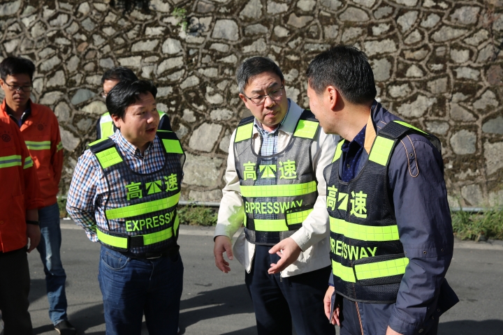 10月31日上午,臺(tái)州高速集團(tuán)董事長陳文波在總工程師江輝的陪同下,趕赴甬臺(tái)溫高速公路溫州方向黃土嶺隧道、橋梁維修加固工程施工現(xiàn)場,檢查施工進(jìn)展情況。