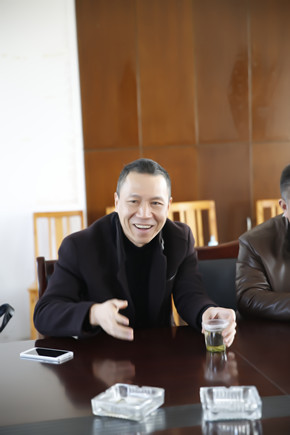 圖為總經理張建平在向鎮、村班子人員了解村里情況