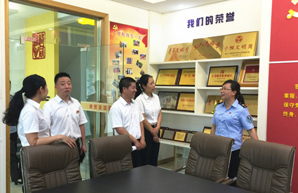 圖為參觀學(xué)習(xí)現(xiàn)場 在章安中心所所長吳玲珍的帶領(lǐng)下,大家先后參觀了章安收費所所文化建設(shè)、黨建活動室、員工學(xué)習(xí)室等,隨后在會議室展開座談交流,重點就收費所稽查考核機制、稽查人員安排、綠農(nóng)車檢查等工作中遇到的熱點難點問題和解決方法進(jìn)行了磋商探討。 通過學(xué)習(xí)交流,大家開闊了視野、拓寬了思路,意識到可以借鑒臺金公司較成熟的稽查考核經(jīng)驗,并結(jié)合本部門實際,優(yōu)化稽查機制、提高稽查效率,進(jìn)一步提升各收費所的稽查考核管理水平。 葉茂