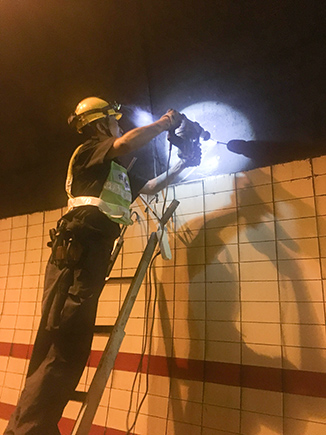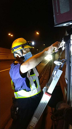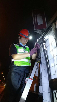 圖為工作人員安裝消防燈燈泡 大溪嶺—湖霧嶺隧道全長4116米,為保障隧道內(nèi)行車安全、暢通、舒適,定期組織安排清洗隧道兩壁墻體、邊溝,檢修內(nèi)部各項機電設(shè)施成了維養(yǎng)中心每季必不可少的工作之一。而每次清洗檢修必將涉及封道,為最大程度減少因封道對社會造成的負(fù)面影響,中心工作人員早在一周前就對隧道內(nèi)各項損壞機電設(shè)備進(jìn)行摸底統(tǒng)計,以便合理制定維修方案和安排施工人員。 12號早上7點,隨著封道工作就緒,兩組清洗隊伍分別從隧道中部開始向兩頭清洗,六組專業(yè)燈具維修人員站在貨車腳手架上由北往南逐個推進(jìn),發(fā)現(xiàn)一盞修復(fù)一盞,或更換燈管、或更換觸發(fā)器、或更換鎮(zhèn)流器,對于一些同時有多個配件壞死或腐蝕嚴(yán)重的燈具就直接采取整體更換措施,大大提高了工作效率。而中心工作人員除了現(xiàn)場全程協(xié)調(diào)管理以外,還負(fù)責(zé)修復(fù)隧道兩壁逃生標(biāo)志及報警電話等多個指示牌。按照之前制定的計劃,六人兵分兩組由隧道兩頭分別向中間修復(fù),這樣既能與其他工作同時進(jìn)行又不造成相互干擾。另外一人則配合隧道所一起在登高車協(xié)助下,對洞內(nèi)各類攝像頭進(jìn)行逐個清理,全場人員各司其職,各盡其責(zé),現(xiàn)場一派忙碌的景象。 4公里多長的隧道,由于流動性差,洞內(nèi)空氣質(zhì)量比霧霾嚴(yán)重數(shù)倍,僅一只口罩根本凈化不了廢氣,但由于時間緊,任務(wù)重,中心隊員和施工人員顧不上惡劣的環(huán)境,努力和時間賽跑,兩日下來共修復(fù)(清理)損壞燈具100余套,各類標(biāo)志指示牌40余塊,攝像頭30余個,恢復(fù)了隧道內(nèi)各項機電設(shè)施的正常運行,排除一切安全隱患,有效保證了隧道安全暢通。 項寅曉