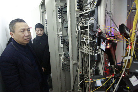 圖為集團(tuán)副董事長(zhǎng)、總經(jīng)理張建平在監(jiān)控中心檢查