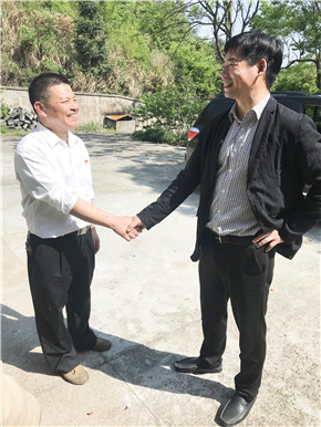 圖為陳保衛(wèi)親切慰問塘嶺執(zhí)勤人員并與之握手