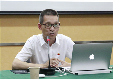 圖為椒江區(qū)委黨校李金花老師作專(zhuān)題報(bào)告
