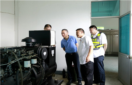張建平察看了配電房,詳細(xì)了解工作職責(zé),要求當(dāng)班員工啟動(dòng)發(fā)電機(jī)組看看保養(yǎng)工作是否到位,機(jī)電運(yùn)行是否正常。