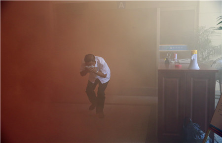 “消防演練現在開始”隨著現場總指揮項同富的一聲令下,在刺耳的警笛聲和濃煙中,天和大廈全體人員在樓層疏散引導員的指引下迅速向一樓撤離。 這是6月26日臺州高速集團聯合多家單位組織的天和大廈大樓消防疏散演練的重頭戲?;馂哪M的著火點在大廈20樓,在災情發生后,微型消防站消防隊員身穿防護服,攜帶消防設備在20樓處置模擬火情。同時消控室發動應急廣播,通報火情,下達全大樓疏散指令。各樓層疏散引導員立即組織本樓層人員以濕毛巾捂住口鼻,彎腰低頭從消防樓梯魚貫而出向下撤離。