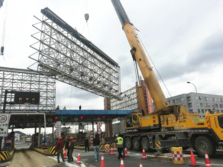圖為臺(tái)州收費(fèi)站拆廣告現(xiàn)場(chǎng)