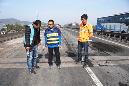 集團路面養護工程量巨大,提升路況指數卻迫在眉睫,“黑劍”毅然全身心地投入到養護攻堅隊伍中,自9月26日臨海南匝道路面施工啟動至今的兩個多月時間里,他放棄了所有休息日,每時每刻堅守在路面專項施工現場,緊盯施工安全、質量和進度,一旦發現施工中存在的問題,便第一時間了解情況,做好分析判斷和協調工作。