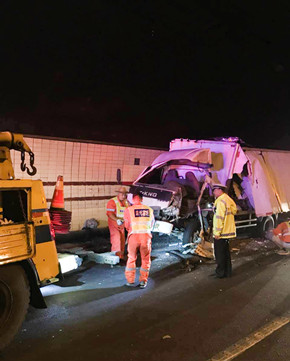 這輛“始作俑者”的車輛由于司機疲勞駕駛,不慎撞擊隧道壁而引發側翻,雖然該車內無人員受傷,可是跟隨其后的拖掛車就沒那么幸運。拖掛車司機看到前方出狀況,當即采取緊急制動,剎得太急又致使后方小貨車追尾,導致該車車頭嚴重受損,司機的手臂受了傷,運輸的鋁塊也撒了一地。