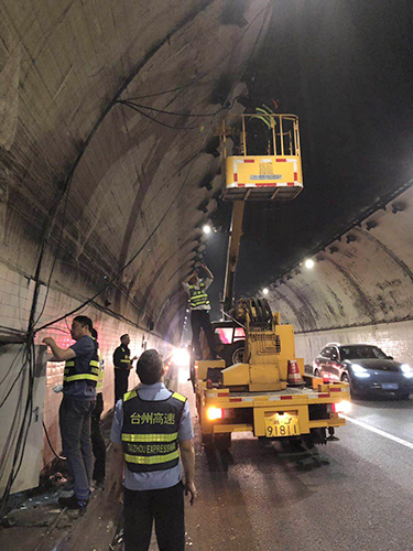 爭分奪秒修電纜 全力以赴保暢通 “大家加把勁兒,先把這根電纜固定好,絕不能影響隧道安全通行!”5月9日早上,黃土嶺隧道所所長李海福在溫向隧道,指揮執(zhí)勤隊員電纜搶修。
