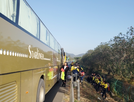 11月15日上午7點(diǎn)30分,一輛大客車在距離臨海南收費(fèi)所寧向5公里處拋錨,需要救援。 12分鐘后,施救中心人員趕到現(xiàn)場,這是一輛載滿學(xué)生的大巴車,拋錨在硬路肩。大巴車司機(jī)告訴救援人員,這是浙江省某實(shí)驗(yàn)中學(xué)的學(xué)生,在去往臨海研學(xué)的過程中,車輛忽然出現(xiàn)故障,車上有近三十名學(xué)生和兩個(gè)老師。