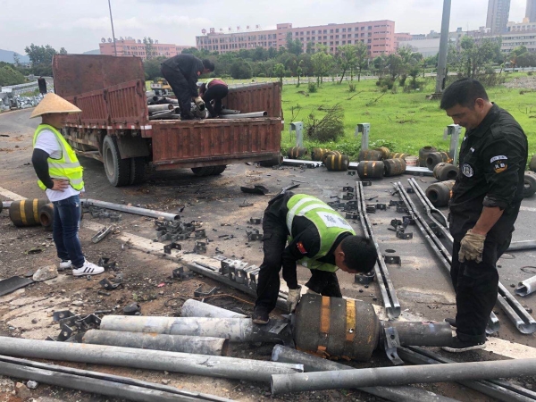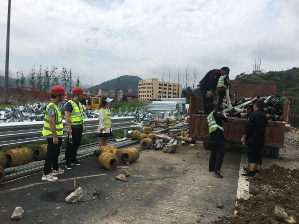 公司多部門聯(lián)合處置廢舊物資 7月27日,為協(xié)助工程部開展6.13浙江溫嶺槽罐車爆炸事故受損路段維修,盡早恢復(fù)通行。資產(chǎn)管理部在本月第二次聯(lián)合工程部、計(jì)財(cái)部、監(jiān)察室對(duì)公司路損防撞護(hù)欄板及立柱等廢舊物資進(jìn)行處置。