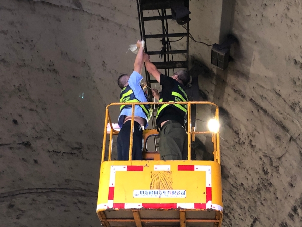 車流如潮的現(xiàn)場給管理所的保暢帶來了挑戰(zhàn)。面對雙節(jié)高峰,執(zhí)勤隊爭分奪秒分組進行有封閉主車道擺放安全防護;提醒來往車輛保持有效車距;查找受損電纜修復(fù);高空作業(yè)包扎脫落電纜。那一刻,他們手頂橋架背影,彎腰查線時的動作,無疑是高速最美麗的風(fēng)景。最后經(jīng)過三個小時的搶修,被拉掉一邊的橋架及電纜終于重新固定恢復(fù)原位。