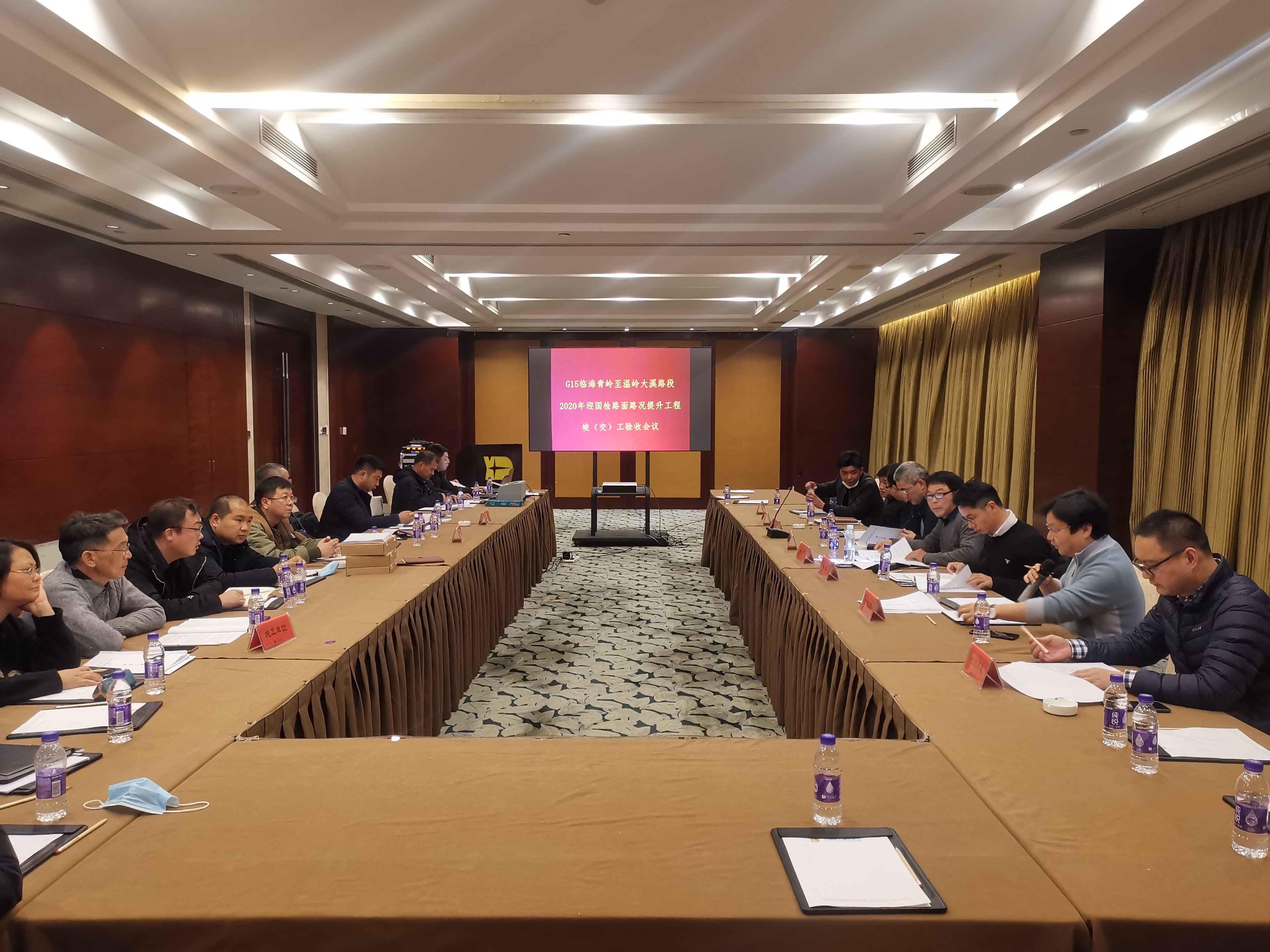 1月14日,臺州市交通工程建設(shè)事務(wù)中心、公司工程養(yǎng)護部、設(shè)計、施工、監(jiān)理、檢測單位等相關(guān)人員,以及特邀專家組成質(zhì)量評定小組對2020年迎國檢路面路況提升工程進行現(xiàn)場核查評定,并召開為期一天的工程質(zhì)量評定及交(竣)工驗收會議。