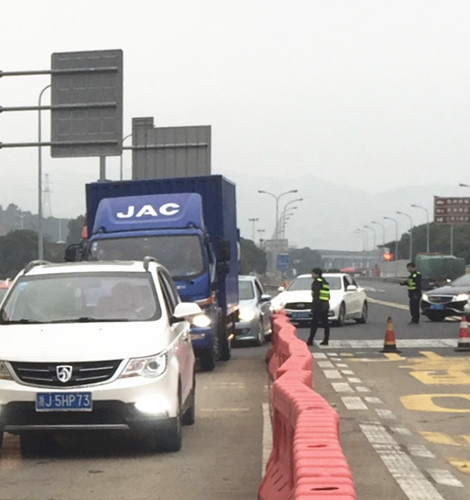 “我們接到通知,主線車流太大,因而先關(guān)閉入口。”