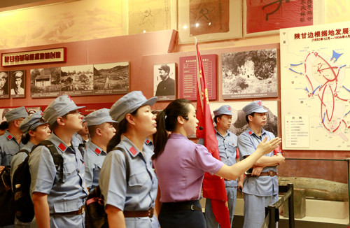 圖為黨員參觀延安革命紀念館 接下來的學習參觀行程安排得非常緊湊,大家冒酷暑頂烈日,一路顛簸,從楊家?guī)X到梁家河再到南泥灣,低矮簡陋的窖洞里,一代偉人的足跡就在眼前,歷史的回音縈繞耳邊,蕩氣回腸的故事撼人心魄;革命紀念館里,面對一張張圖片和一件件歷史文物,大家駐足觀看,思緒不由自主地回到那戰(zhàn)火紛飛的抗日戰(zhàn)爭和解放戰(zhàn)爭,回到艱苦樸素和激情燃燒的延安時代。在解說員的帶領下,所到之處,大家認真聽講解,看到振奮人心的畫面時,大家紛紛拿出手機拍下來留作紀念。 此次延安之行,是一次生動而深入的紅色尋根之旅,更是一次堅定理想信念的精神之旅。收獲滿滿的黨員們掩不住內(nèi)心的喜悅,一路上交流學習體會、分享學習心得。大家紛紛表示,一定要把延安精神貫穿到日常工作中去。此次的延安之行,也將注定成為這29位黨員們一生最難忘的記憶。 鄭瑛芝