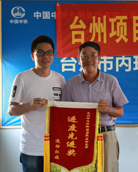 圖為為獲獎施工單位頒發流動紅旗