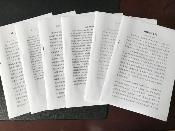 圖為集中學習現場 每月月度例會上,市政公司組織員工有針對性地學習集團和市政公司的制度與流程。該公司制作了一本制度匯編,并分發到人手一本,要求員工認真學習,熟悉公司辦事流程和規章,工作中做到照章辦事,增強員工的制度觀念。 5月月初,市政公司組織開展讀書思廉活動,要求每位員工讀一本勤政廉政書籍,并撰寫一篇讀書心得。從一篇篇心得體會文章中,看到有從歷史廉政小故事切入的,也有從習近平總書記的新時代中國特色社會主義思想和十九大報告中領悟道理的,字字流露了真情實感,句句體現出真切感悟,真正做到了學有所悟,營造了良好的學廉思廉的氛圍。